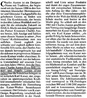 CHARLES AUSTEN symbolisiert die Geschmackskriterien der Pariser Mode: